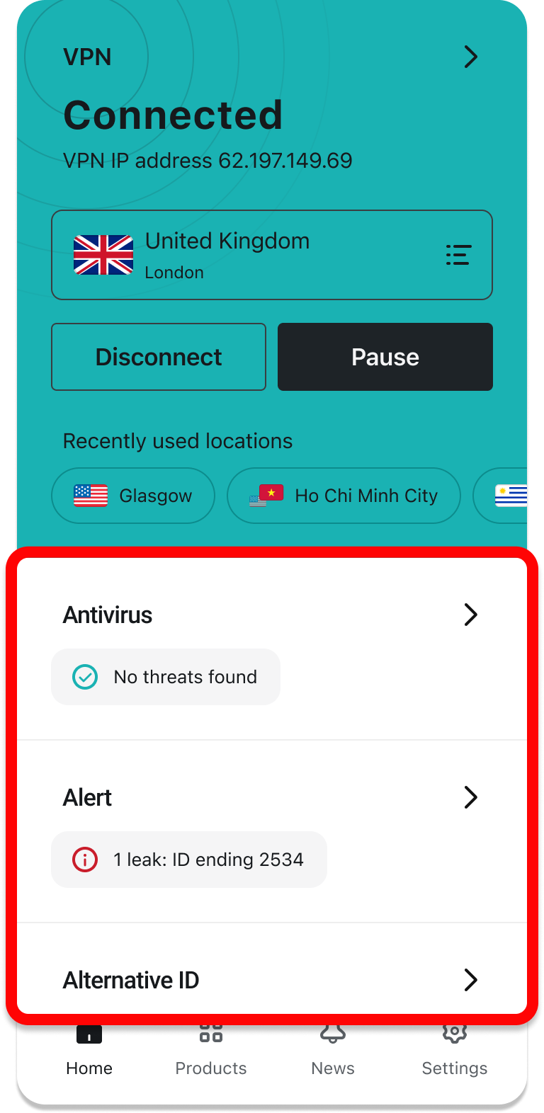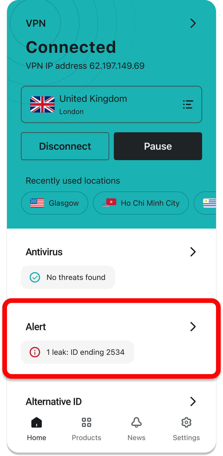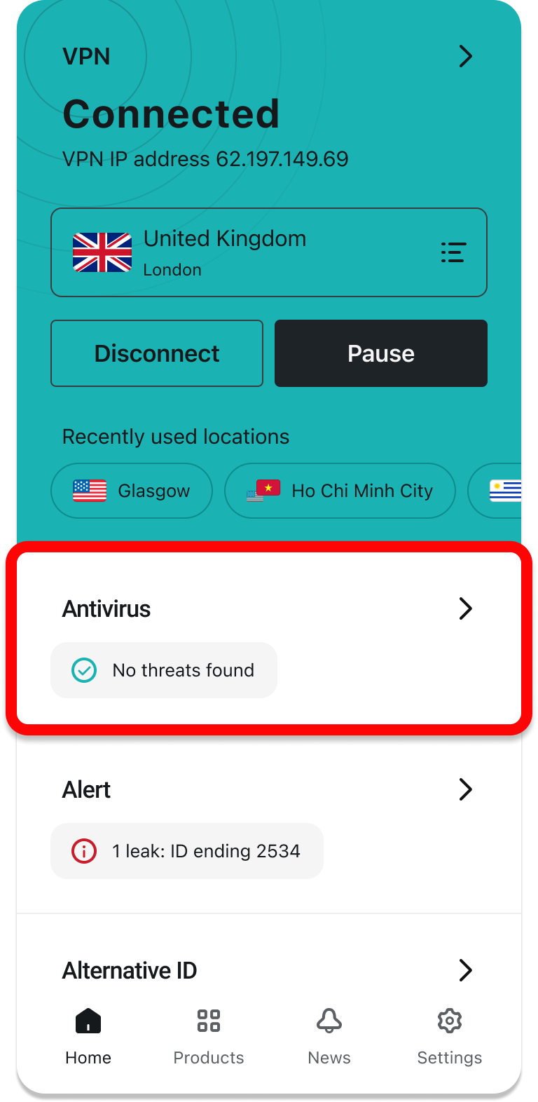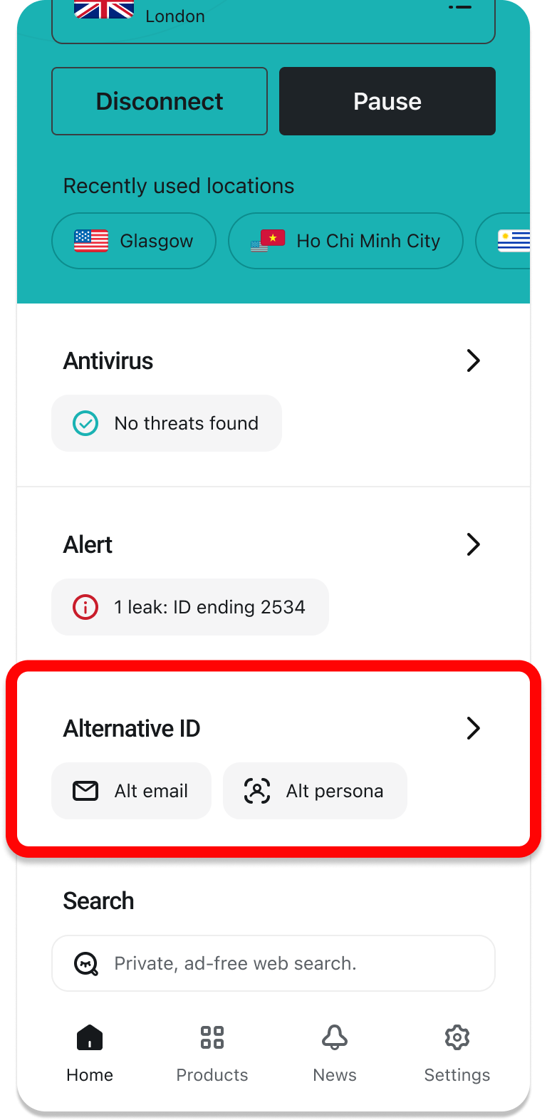Surfshark offers not only a VPN but also Antivirus, Alert, Search, and Alternative ID—all products included in your Surfshark subscription plan will be reflected on the home screen for quicker and more convenient access.
