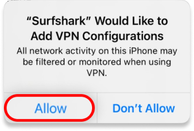 NOTE: If you haven’t added Surfshark to VPN Configurations before, you’ll have to do so to proceed.