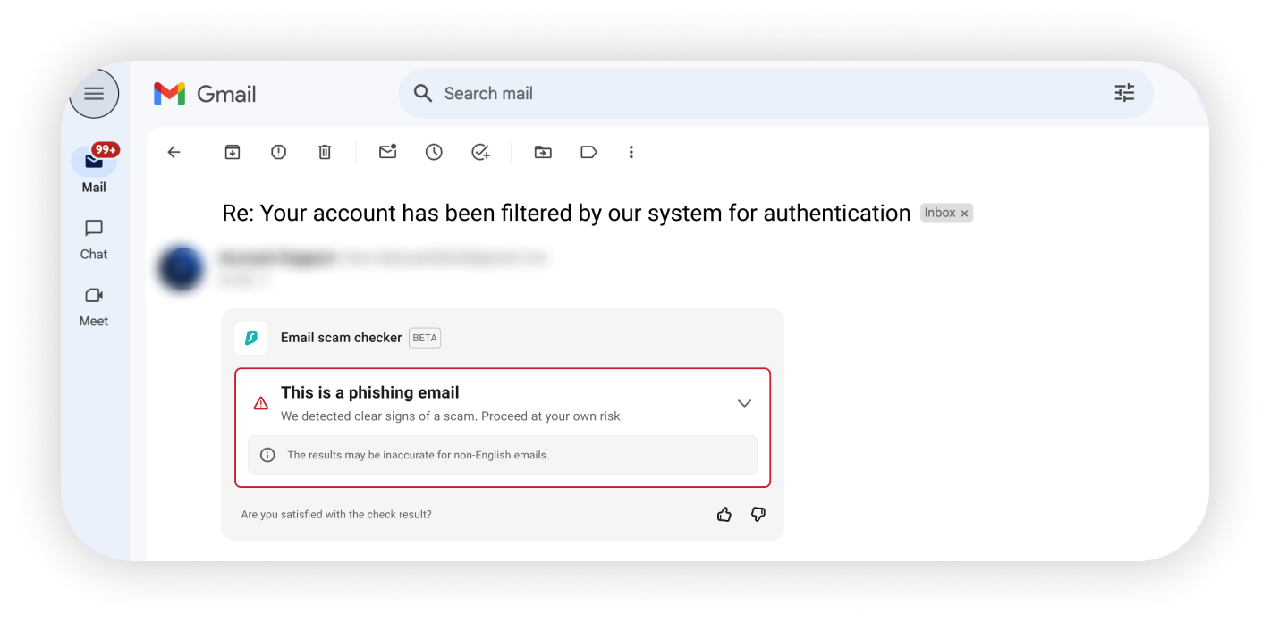Note: The Email scam checker currently works exclusively with Gmail when accessed at mail.google.com.