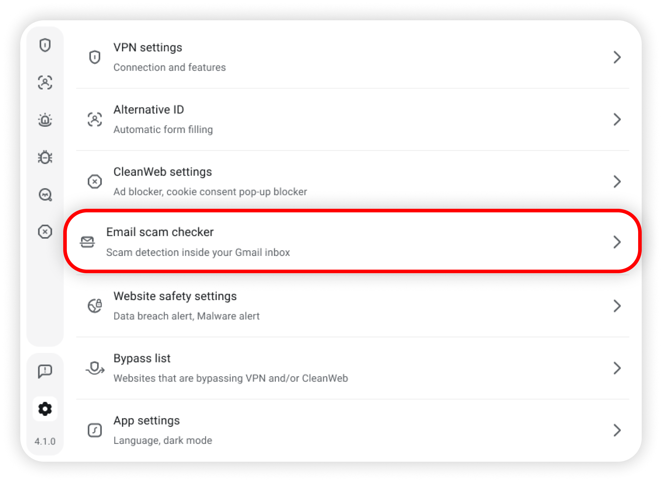 The Email scam checker feature activates automatically once the Surfshark browser extension on Chrome is installed. You can disable it in your browser extension settings.