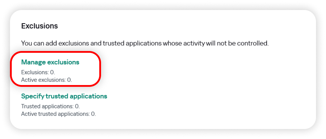 4. Click Manage exclusions: