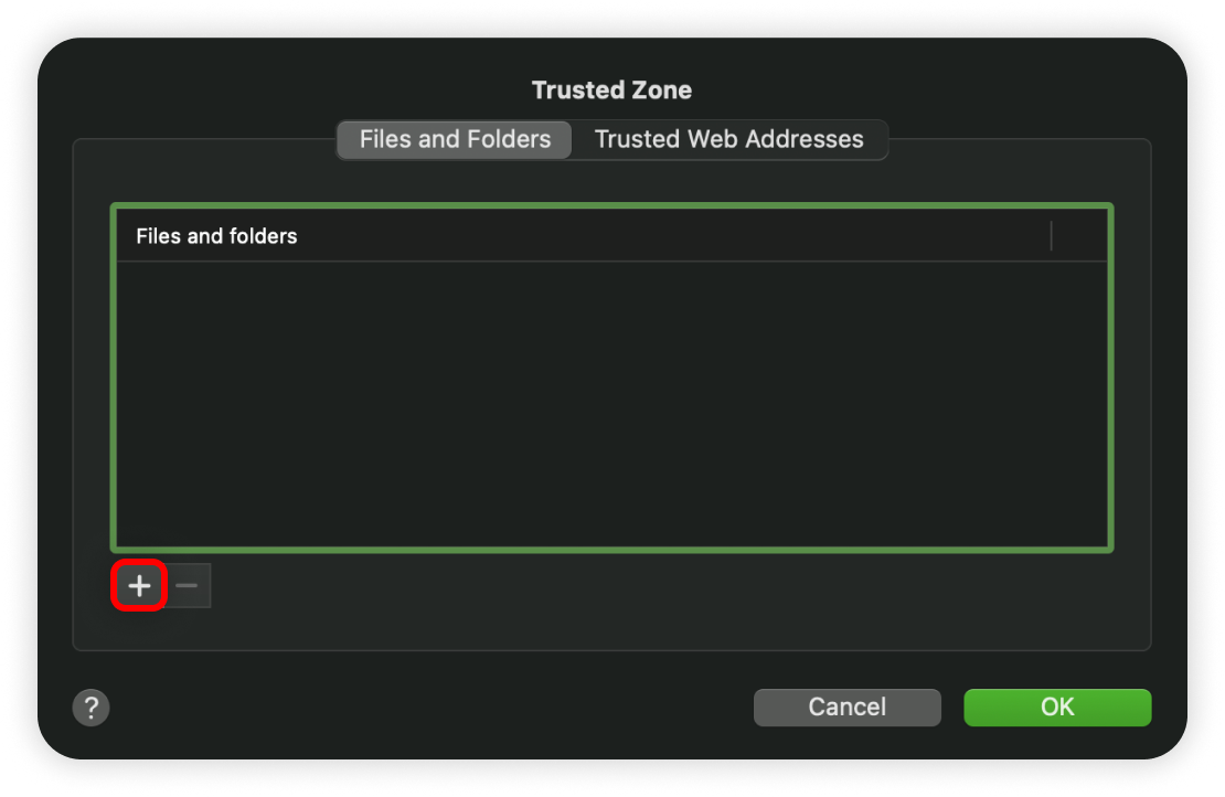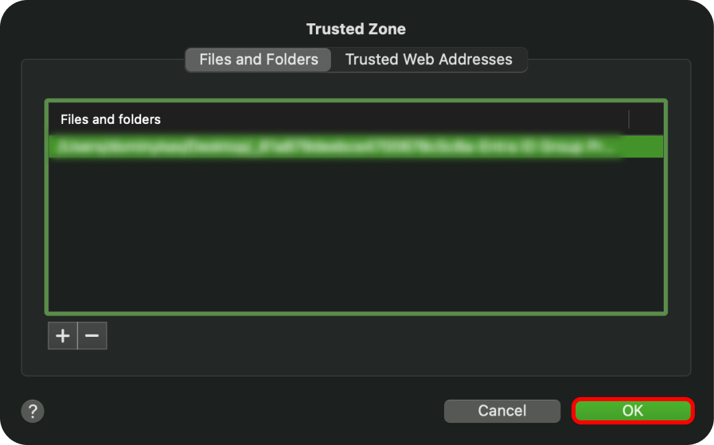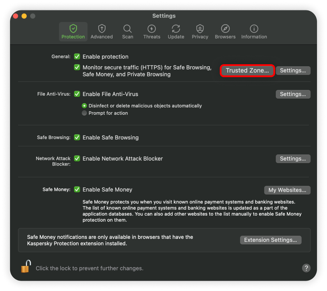 2. In the Protection tab, click on Trusted Zone...: