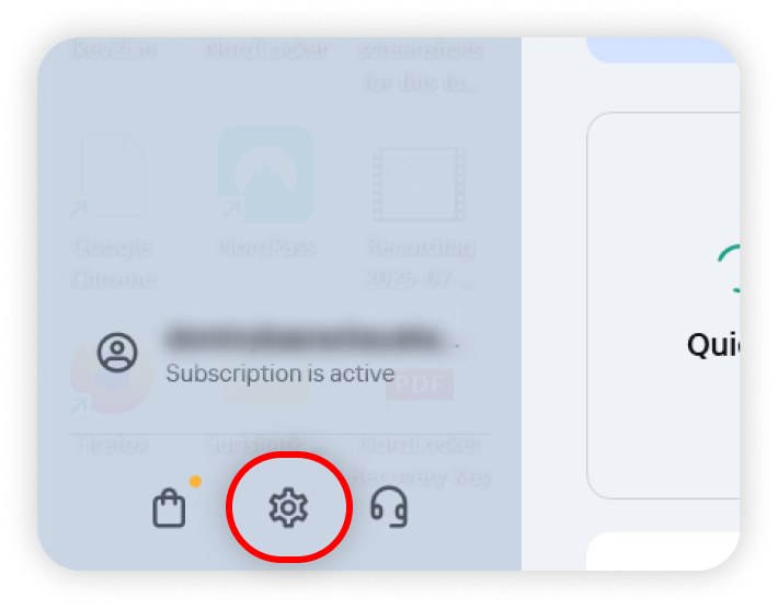 1. Launch the Kaspersky app and click on Settings at the bottom-left corner of the interface:
