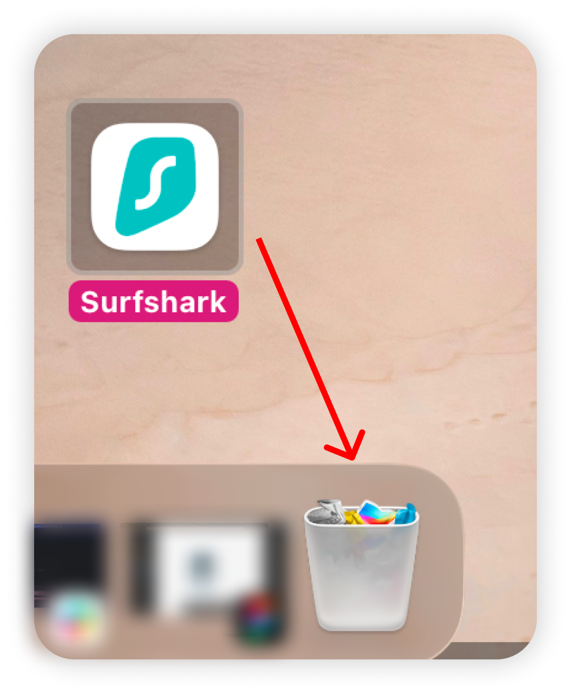 - Locate the Surfshark application and drag it to the Trash: