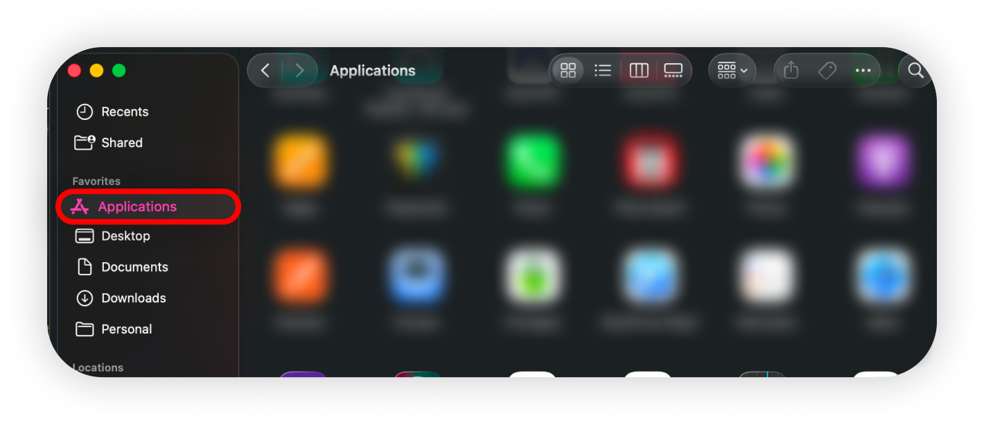 - In the Finder window, navigate to Applications: