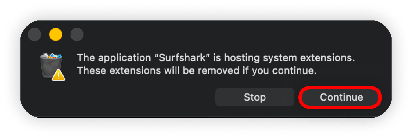 Delete Surfshark app installed via .DMG file